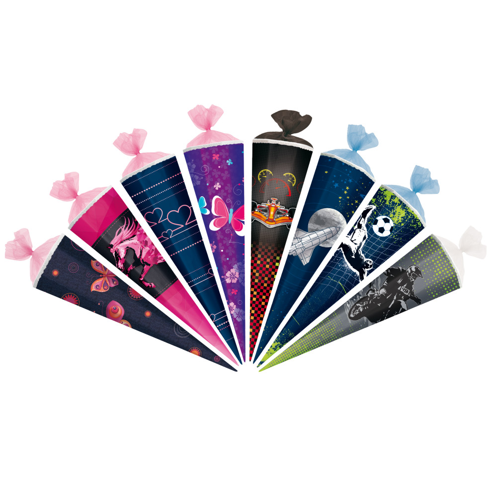 Geschwistertüte hexagonal 50 cm, 10 Motive aufgefächert |