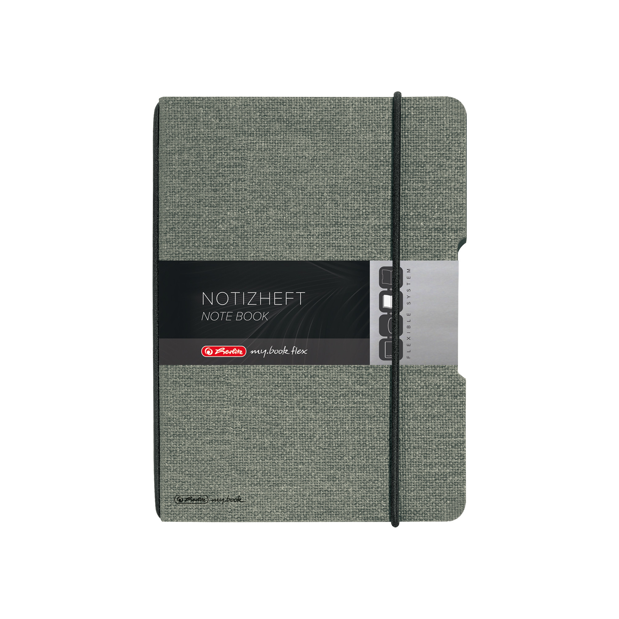 Notizheft A5 my.book flex Leinen grau, Banderole |