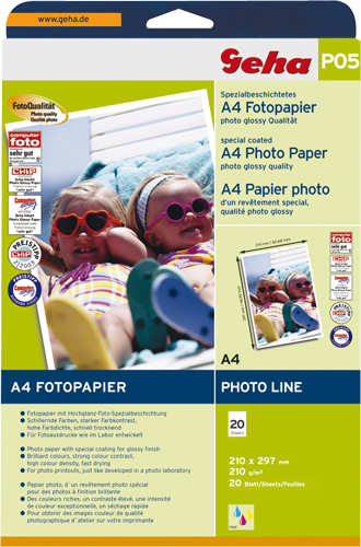 - 90211 - P05 A4 Fotopapier 210g/qm, 20 Bl. photoglossy Geha (Einzelabbildung)