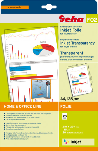 - 90006 - F02 Ink-Jet-Folie klar, 20 Blatt DIN A4 Geha (Einzelabbildung)