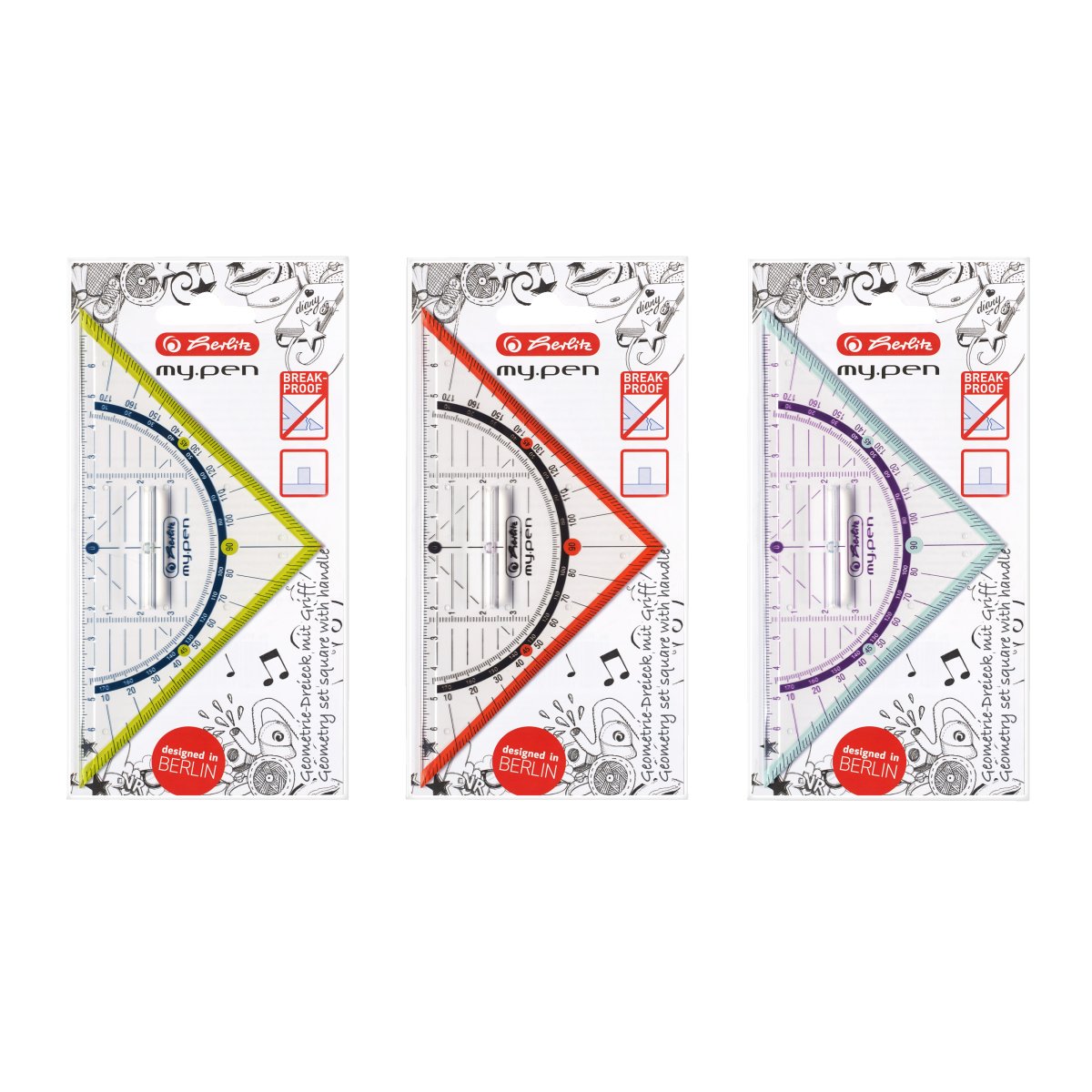 - 11367968 - Geometriedreieck my.pen 16cm Kunststoff 16cm mit Griff farbig sortiert (Einzelabbildung)