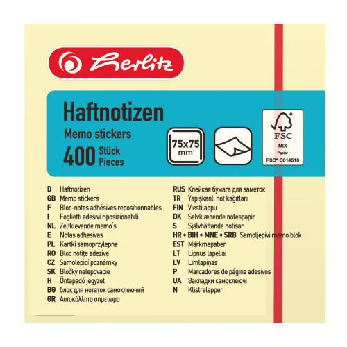 - 790741 - Haftnotizblock 75x75 mm 400 Blatt gelb FSC Mix (Einzelabbildung)
