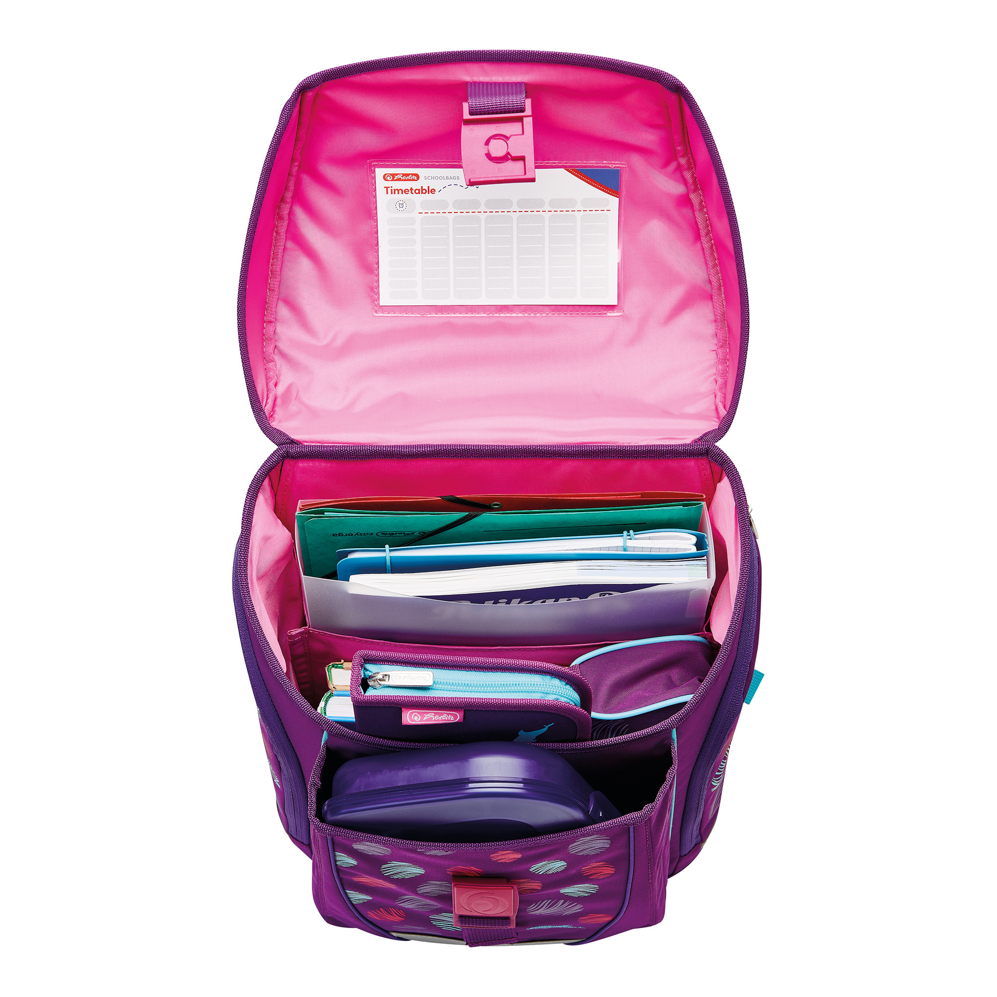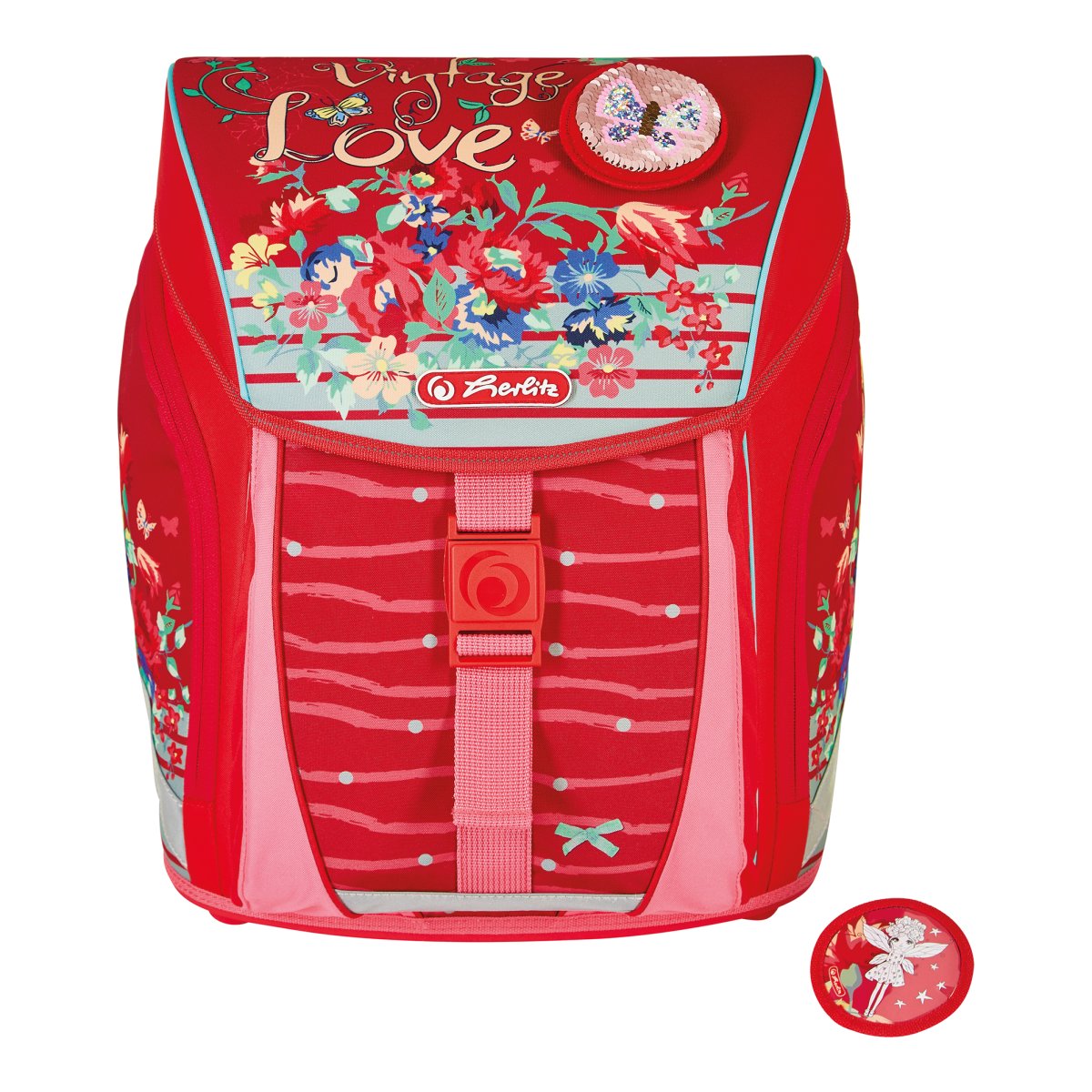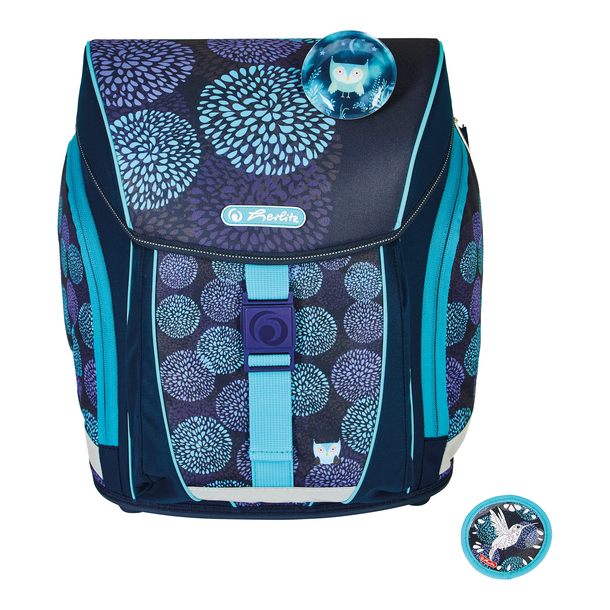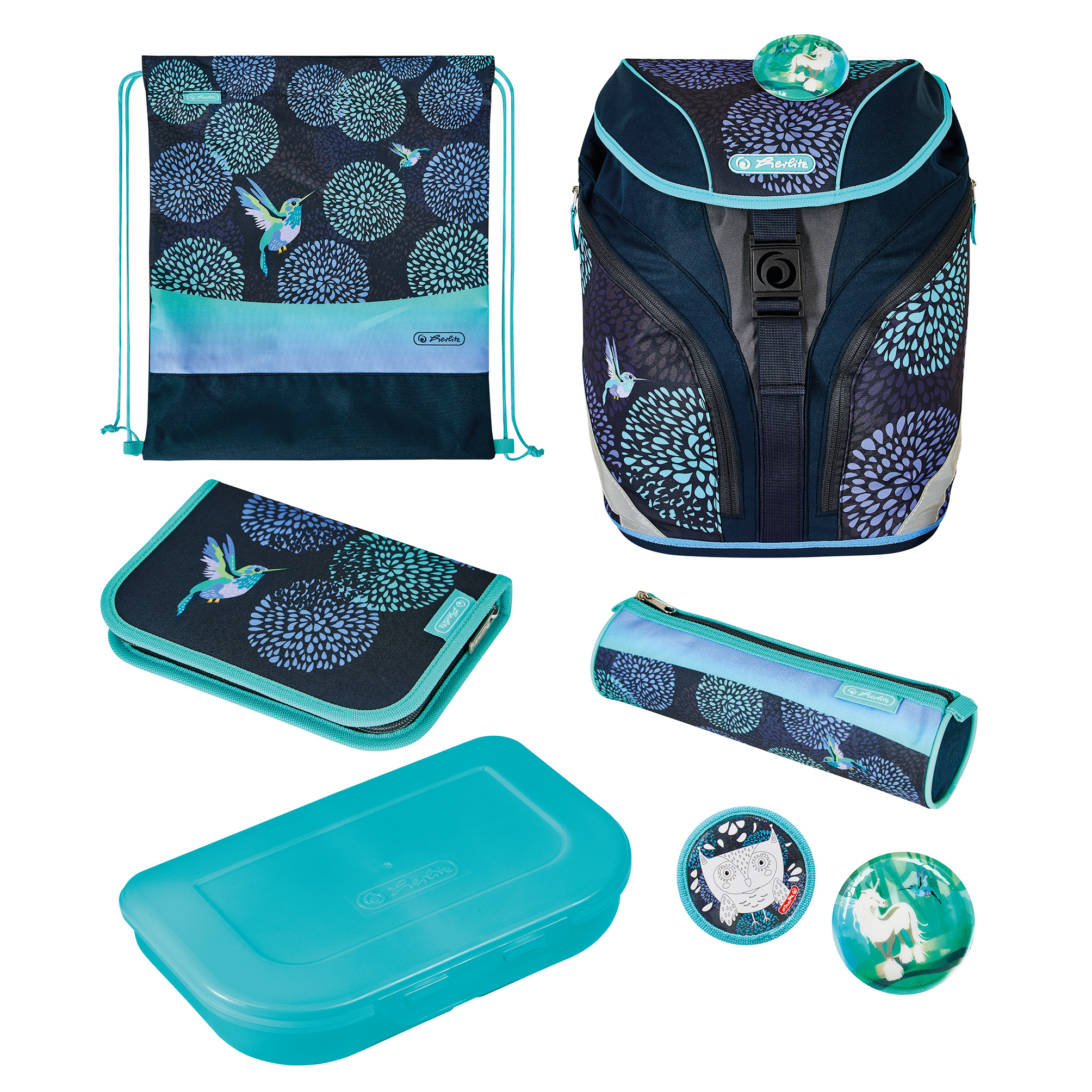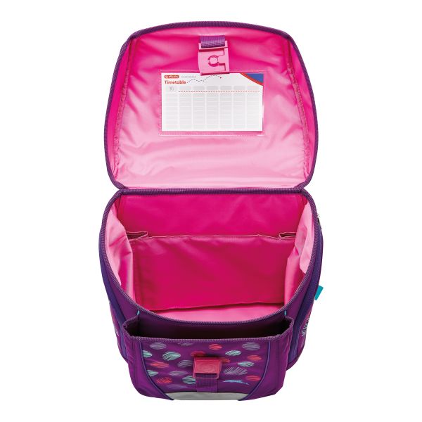 Grundschulrucksack SoftLight, Sportb., Schüleretui, Faul. und 2 Applikationen, Bloomy Birds, Brotbox
