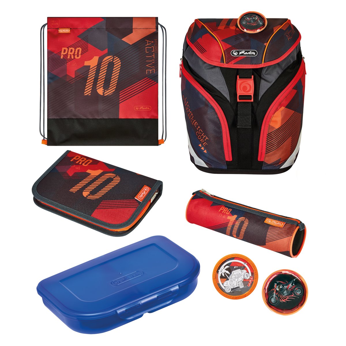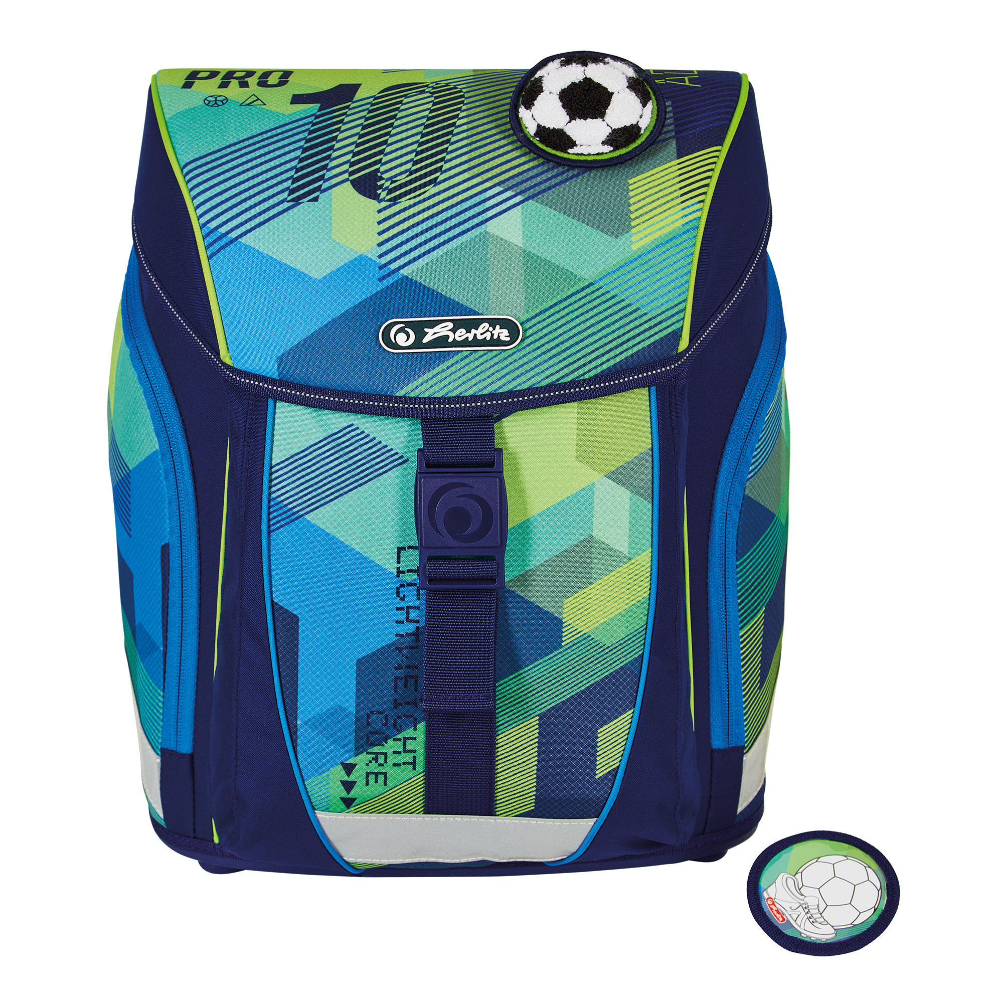 Grundschulrucksack SoftLight, Sportb., Schüleretui, Faul. und 2Applikationen, Stars&Stripes, Brotbox