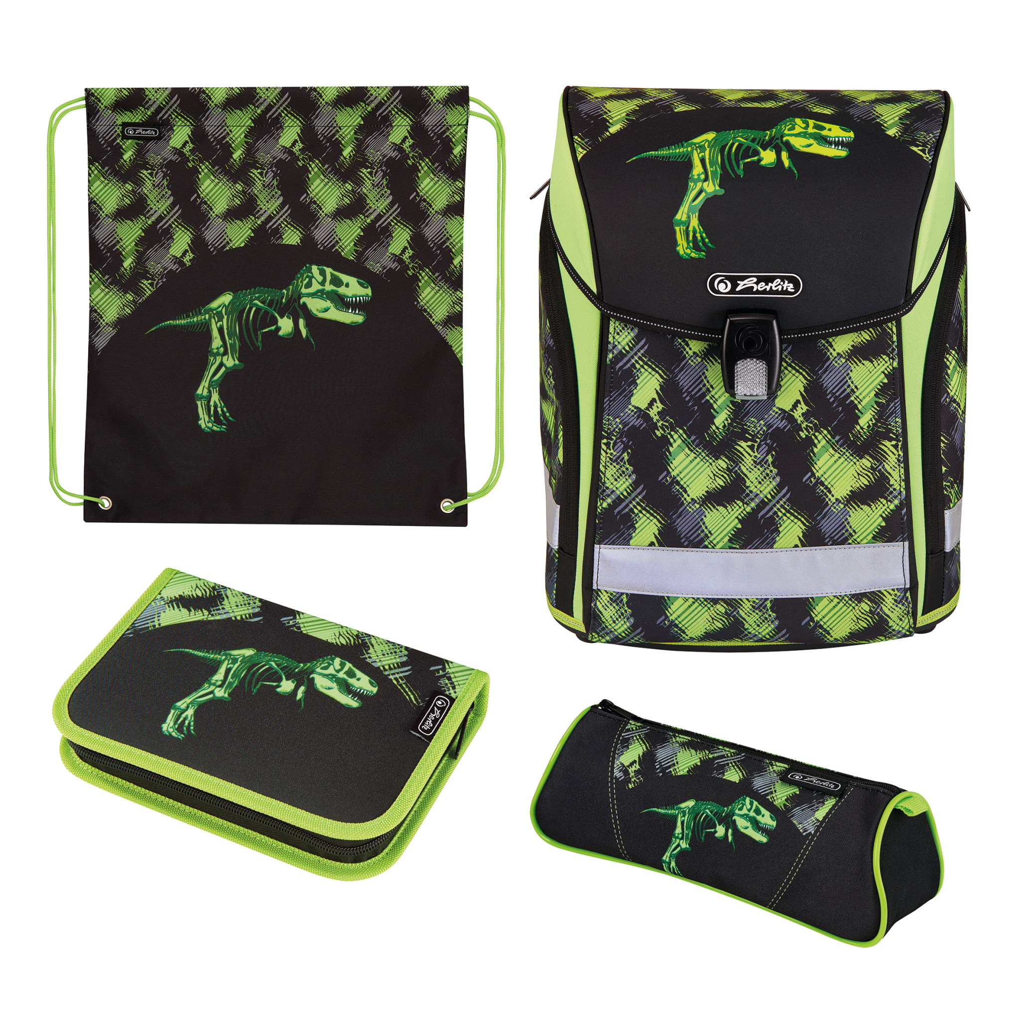 Schulranzen Midi, Sportbeutel, Schüleretui und Faulenzer Dreikant Dino Skeleton |