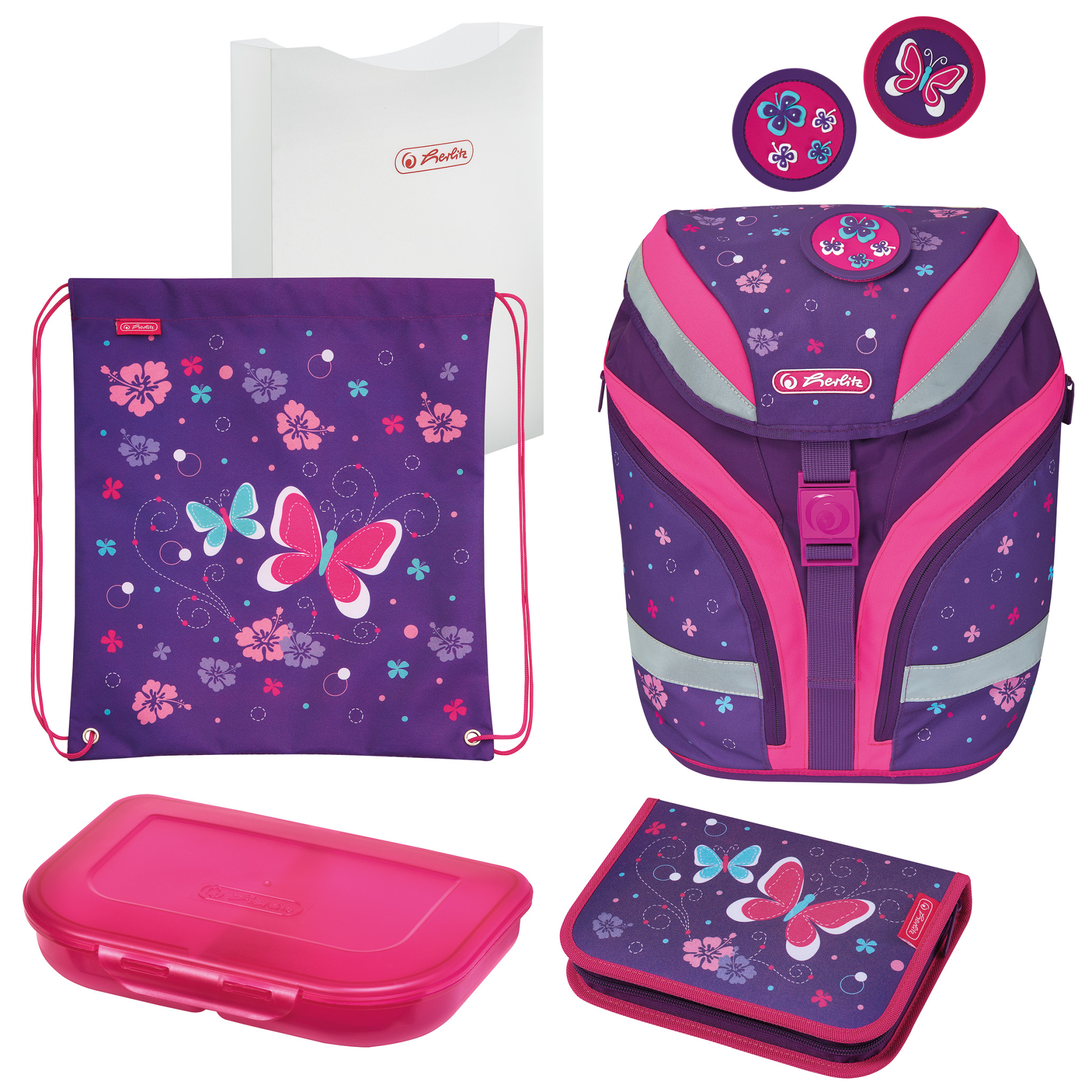 Grundschulrucksack SoftFlex Plus, Schüleretui und Sportbeutel Butterfly + Heftbox |