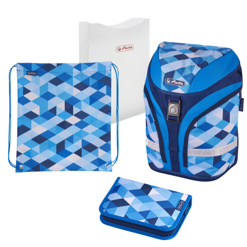 Grundschulrucksack Motion Plus, Schüleretui und Sportbeutel Blue Cubes + Heftbox |
