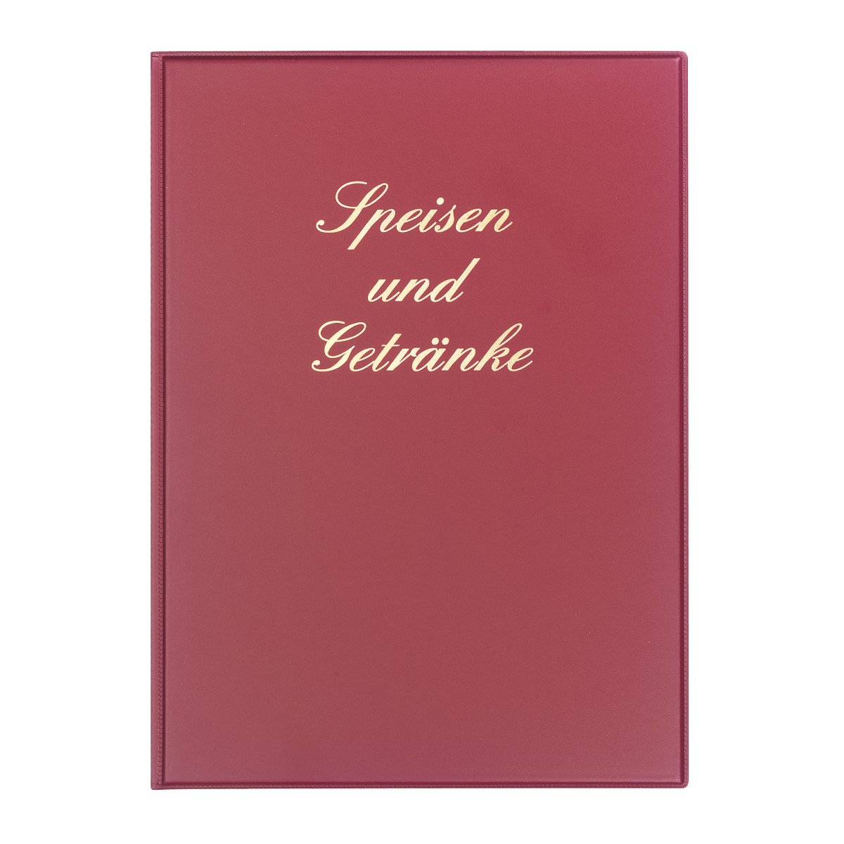 PVC-Folieneinband mit 6 Klarsichthüllen 23,4 x 32 cm, Klarsichtfach im Vorder- und Rückendeckel innen Vorderseite mit Goldprägung weinrot 1 Stück |