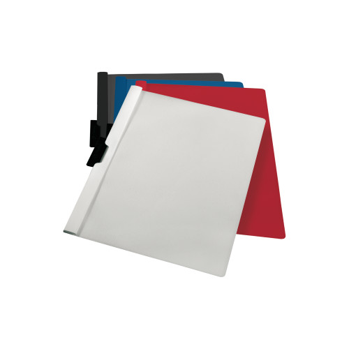Kunststoff-Folie Klemmhefter für ungelochtes Schriftgut, Fassungsvermögen bis ca. 30 Blatt, Vorderdeckel trans- parent, schwarzer Metall-Clip dunkelblau 1 Stück |
