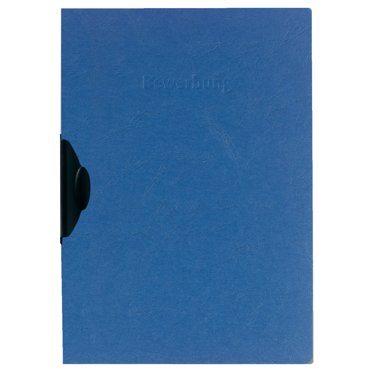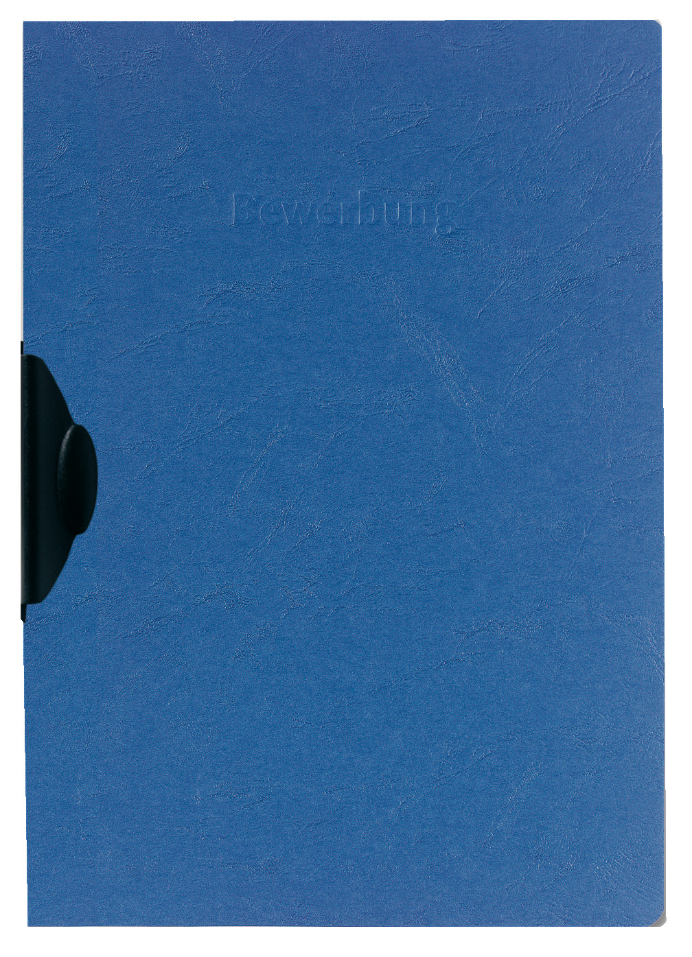 Recycling-Karton, ledergeprägt mit Blindprägung "Bewerbung" Fassungsvermögen bis ca. 30 Blatt mit schwarzer Swing-Mechanik blau 1 Stück |