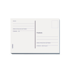 holzfreier Offsetkarton, 170g/m² FSC Mix 14,8 x 10,5 cm Vorderseite 1-farb. bedruckt Anschrift/Absender weiß 20 Stück, geblockt |
