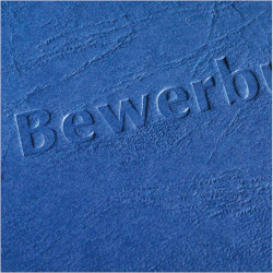 | Recycling-Karton, ledergeprägt mit 5 blauen Klemmschienen, 5 Vorderdeckel, 5 Rückendeckel Vorderd.mit Blindpr."Bewerbung" Fassungsvermögen bis ca. 30 Blatt blau 5 Stück, eingeschweißt |