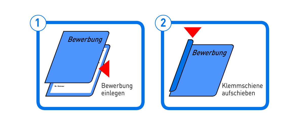 | Artikelbeschreibung | Klemmschienen-Bewerbungsset A4 blau |