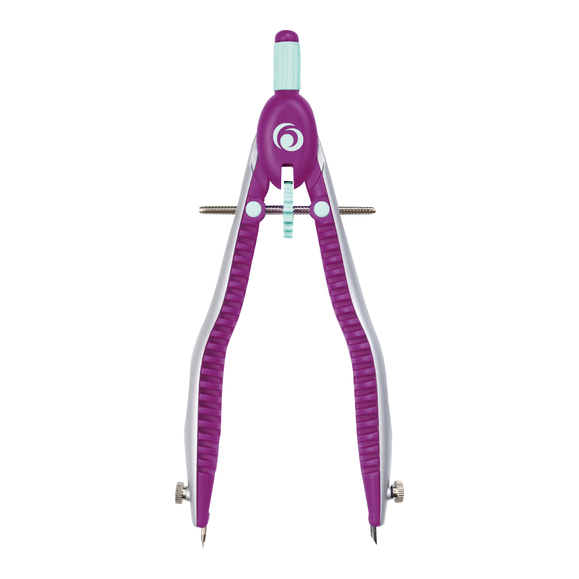 Kernvorteile | Zirkel mit Schnellverstellmechanismus; Ideal für die Schule; Mit Ersatzminenbox mit Stellschraube; Mit Anspitzmöglichkeit; Mit Ersatzspitze und zwei Ersatzminen; Max. Zeichen-Ø 17cm; Länge: 16,3cm; Farbe: Lila-Minze |