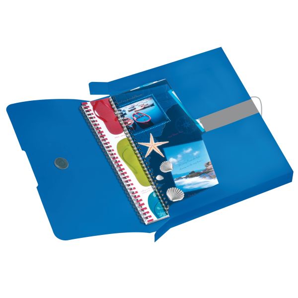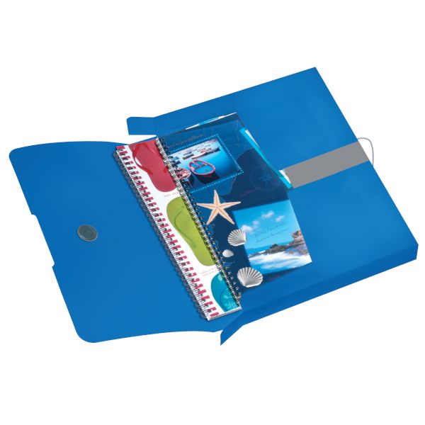 PP-Folie mit Design-Aufdruck Rückenbreite 4 cm Gummizug, rund, mit Verschlussknopf aufgeklebtes Rückenschild opak blau 1 Stück |