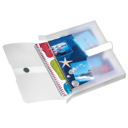 PP-Folie mit Design-Aufdruck Rückenbreite 4 cm Gummizug, rund, mit Verschlussknopf aufgeklebtes Rückenschild transparent farblos 1 Stück |