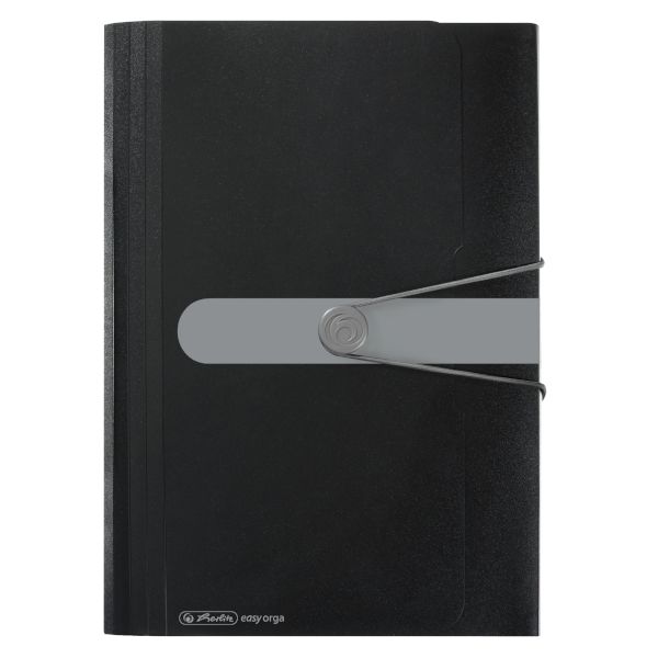 Kernvorteile | Fächermappe "easy orga to go" zum Ablegen von Dokumenten bis Größe A4; Stabile PP-Folie; 12 ausdehnbare Fächer mit Beschriftungsmöglichkeit; Verschluß mit praktischem Gummizug; schwarz mit silberfarbenem Design-Aufdruck |