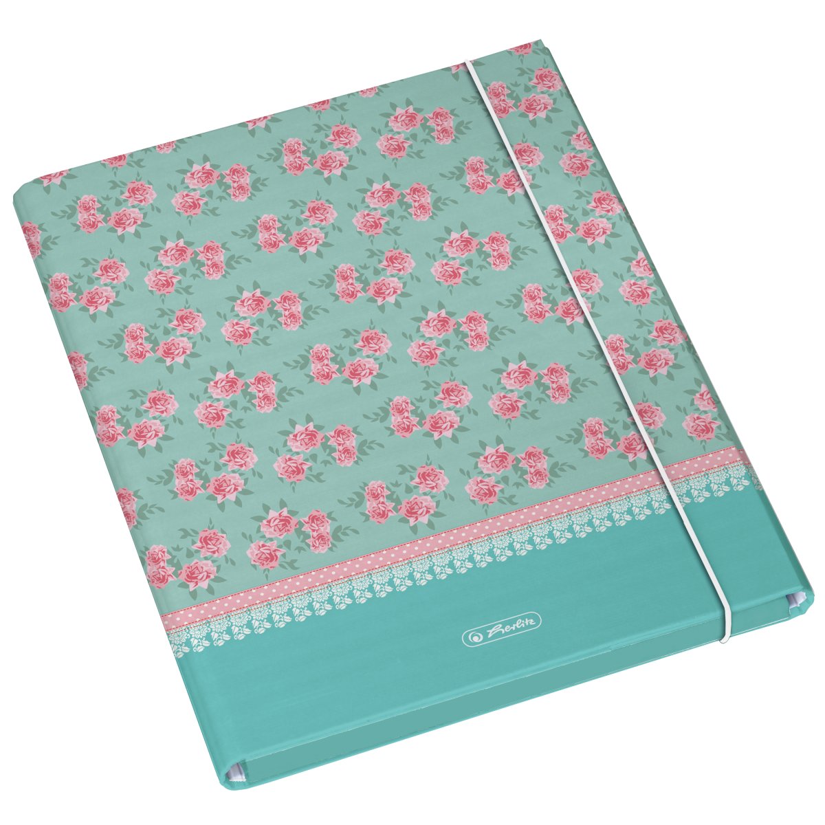 | Extra starke Pappe Einband cellophaniert 3 Innenklappen Gummizug, rund Motiv Roses 1 Stück |