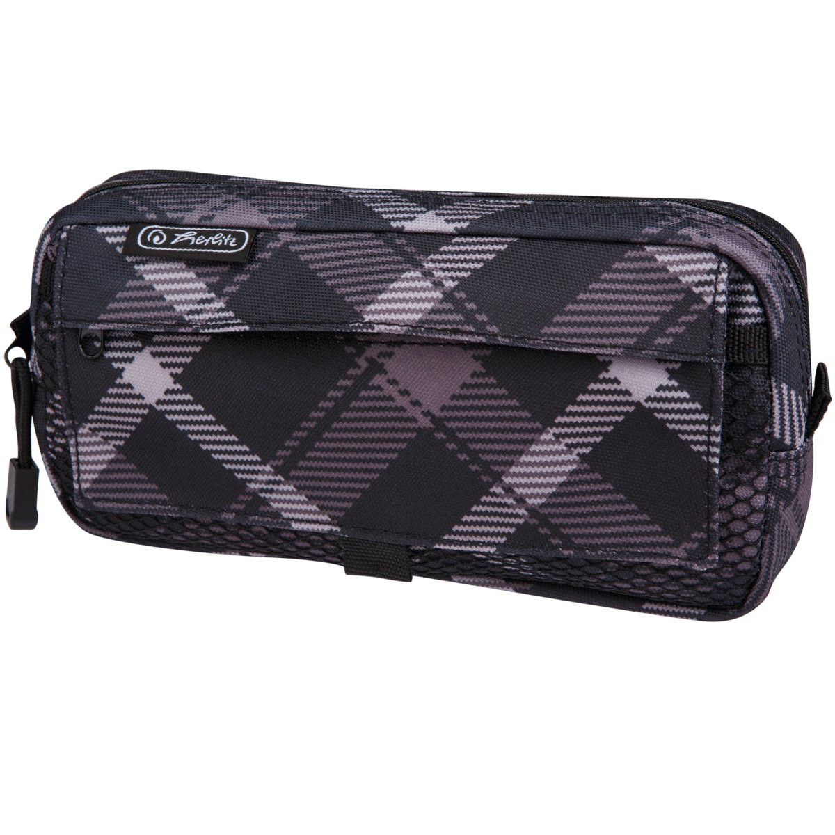 Polyester 21 x 11 x 5,5 cm 1 Netztasche mit Klettverschluss 1 Tasche mit Reißverschluss Karo grau 1 Motiv |