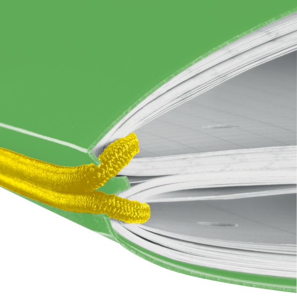 | holzfreies Papier, 80g/m² weiß 2x40 Blatt, Lineatur 27 und 28 gelocht, Mikroperforation PP Wechselcover, hellgrün abgerundete Ecken mit Verschlussgummi gelb 1 Stück |