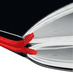 | holzfreies Papier, 80g/m² weiß 2x40 Blatt, Lineatur 27 und 28 gelocht, Mikroperforation PP Wechselcover, schwarz abgerundete Ecken mit Verschlussgummi rot 1 Stück |
