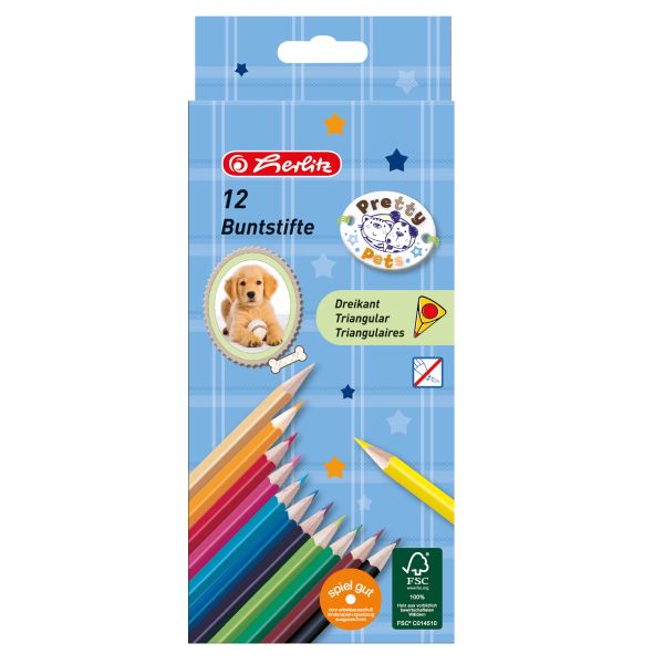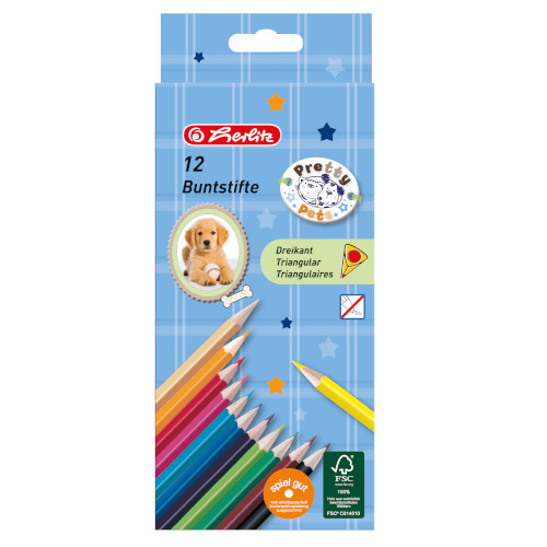 Dreikantbuntstifte 12er Pretty Pets in Hängeschachtel | |