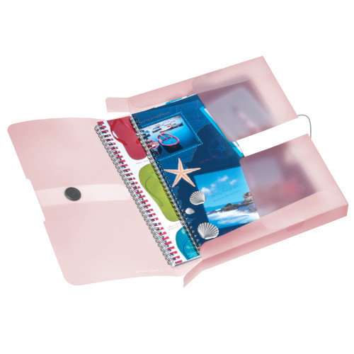 PP-Folie mit Design-Aufdruck Rückenbreite 4 cm Gummizug, rund, mit Verschlussknopf aufgeklebtes Rückenschild transparent rosé 1 Stück |