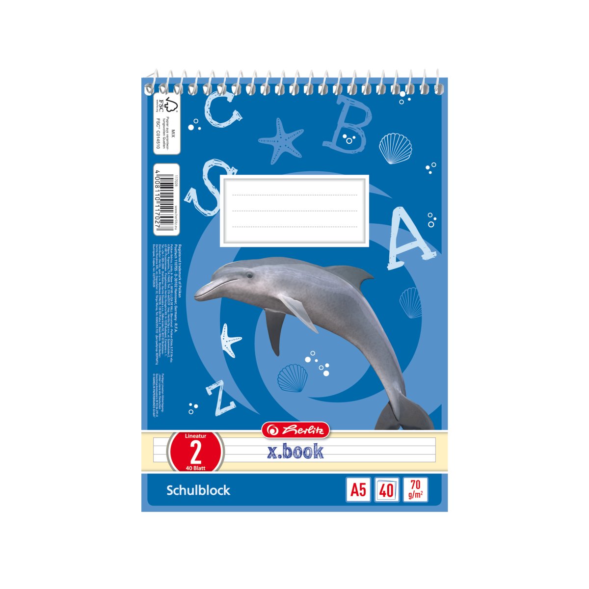 | Spiralschulblock A5 40 Blatt FSC Lineatur 02 Motiv Delfin | |