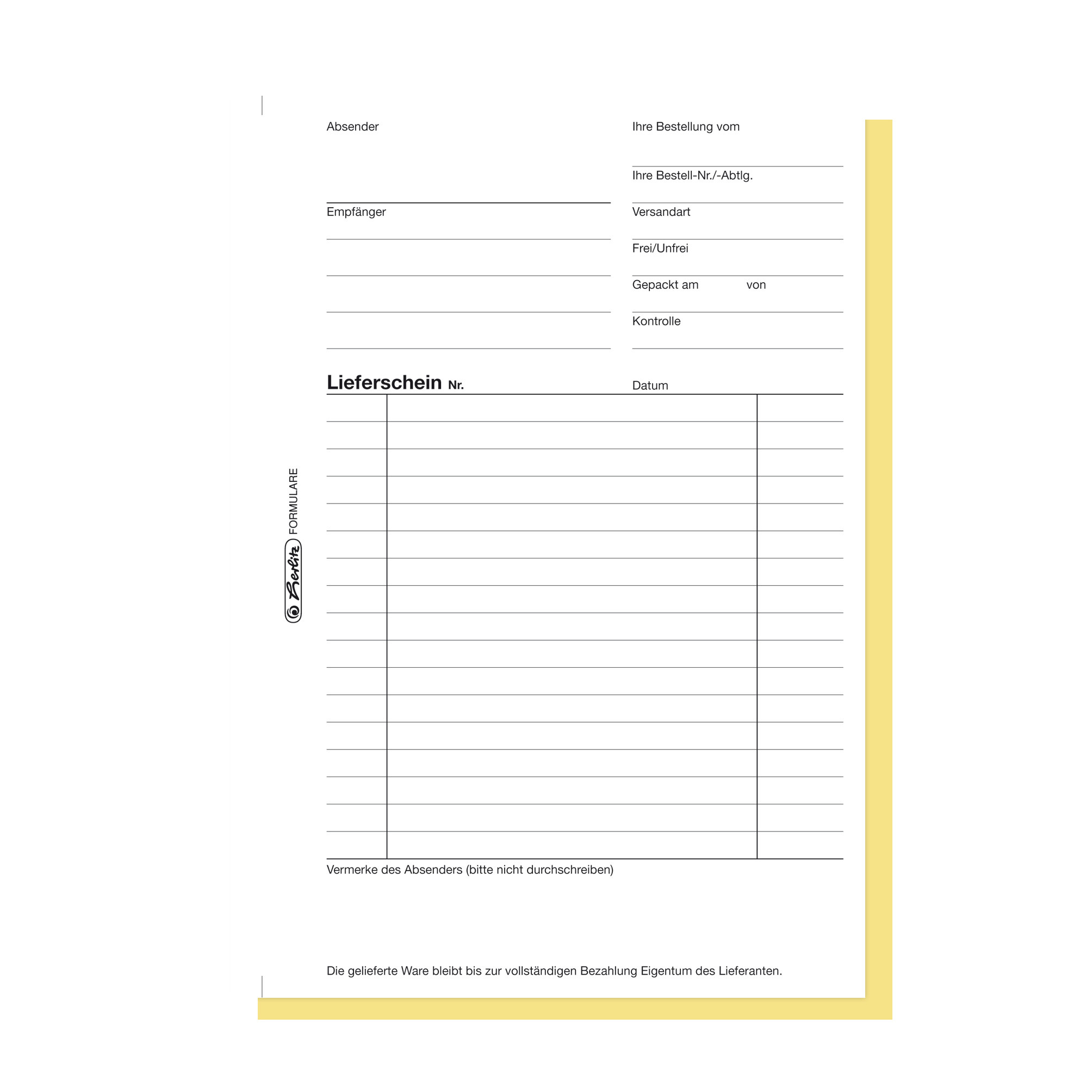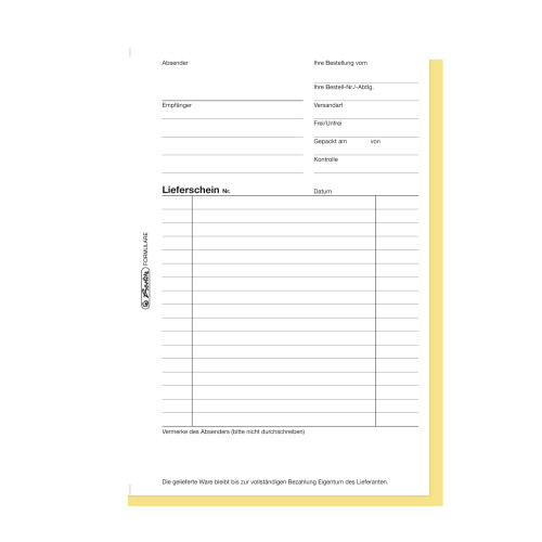 holzfreies Papier, FSC Mix 2 x 40 Blatt Liefer- u. Empfangsscheinformulare selbstdurchschreibend, m. Schreib- schutzklappe, perforiert, gelocht 1.Bl. weiß, 2.Bl. gelb 4er Packung, eingeschweißt |