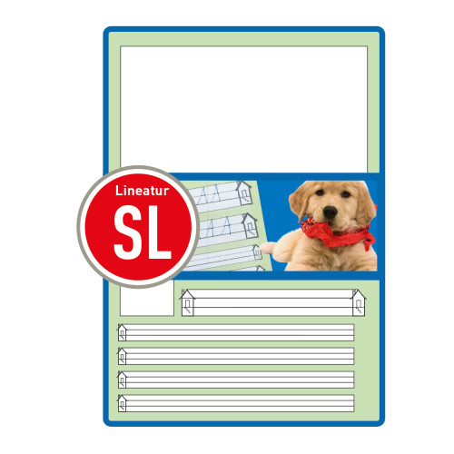 | holzfreies Papier, 80g/m² weiß 16 Blatt Lineatur SL für 1. Schuljahr, geeignet für alle Ausgangsschriften 1 Motiv 1 Stück |