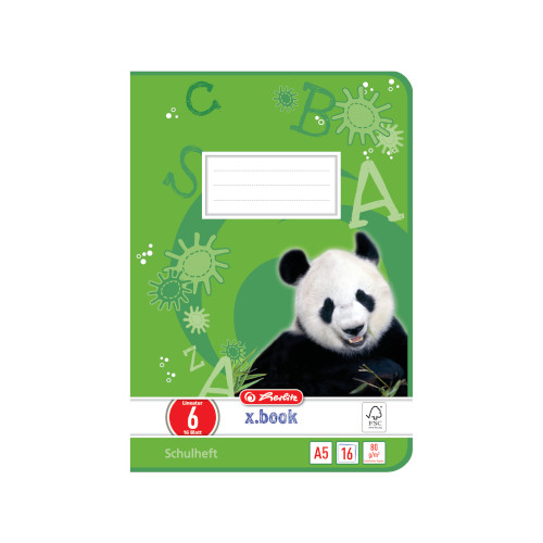 | holzfreies Papier, 80g/m² weiß, FSC Mix, 16 Blatt abgerundete Ecken Lineatur 06 (blanko) Motiv Panda 1 Stück |