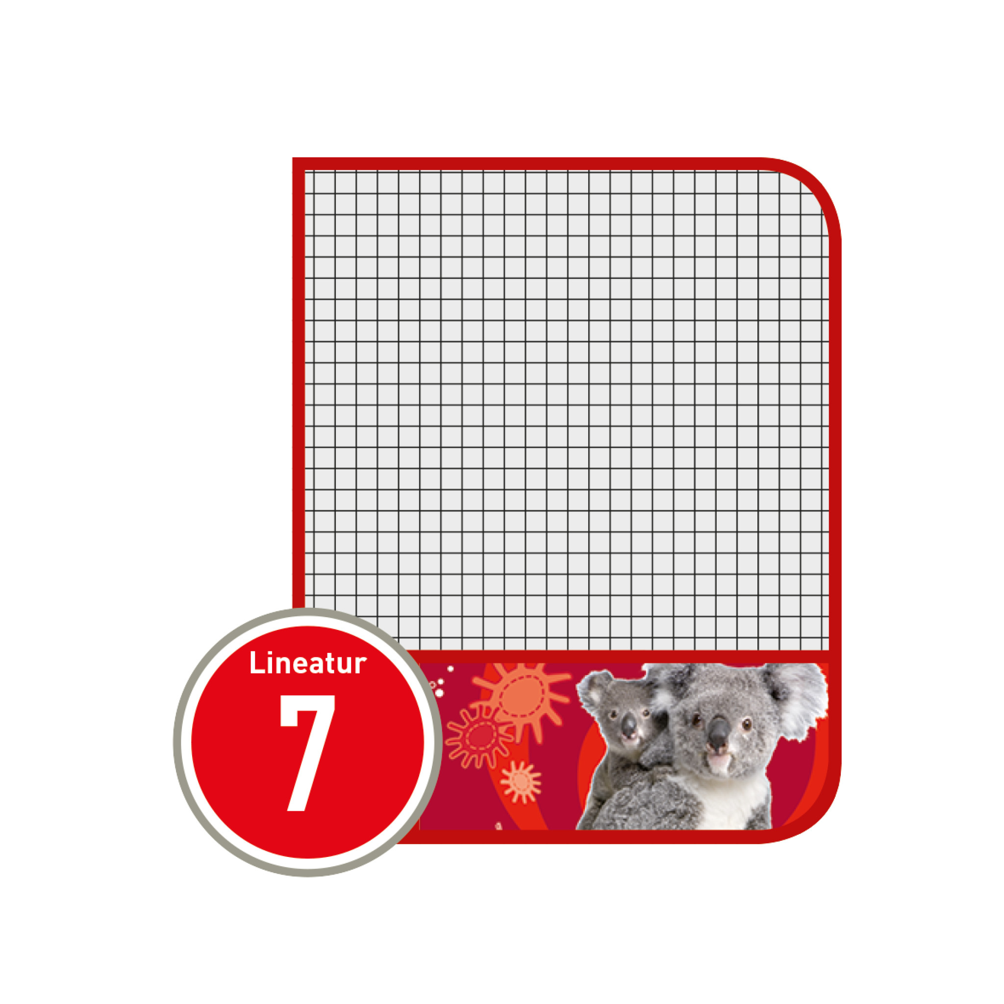| holzfreies Papier, 80g/m² weiß, FSC Mix, 16 Blatt abgerundete Ecken Lineatur 07 (kariert 7x7 mm) Motiv Koala 1 Stück |