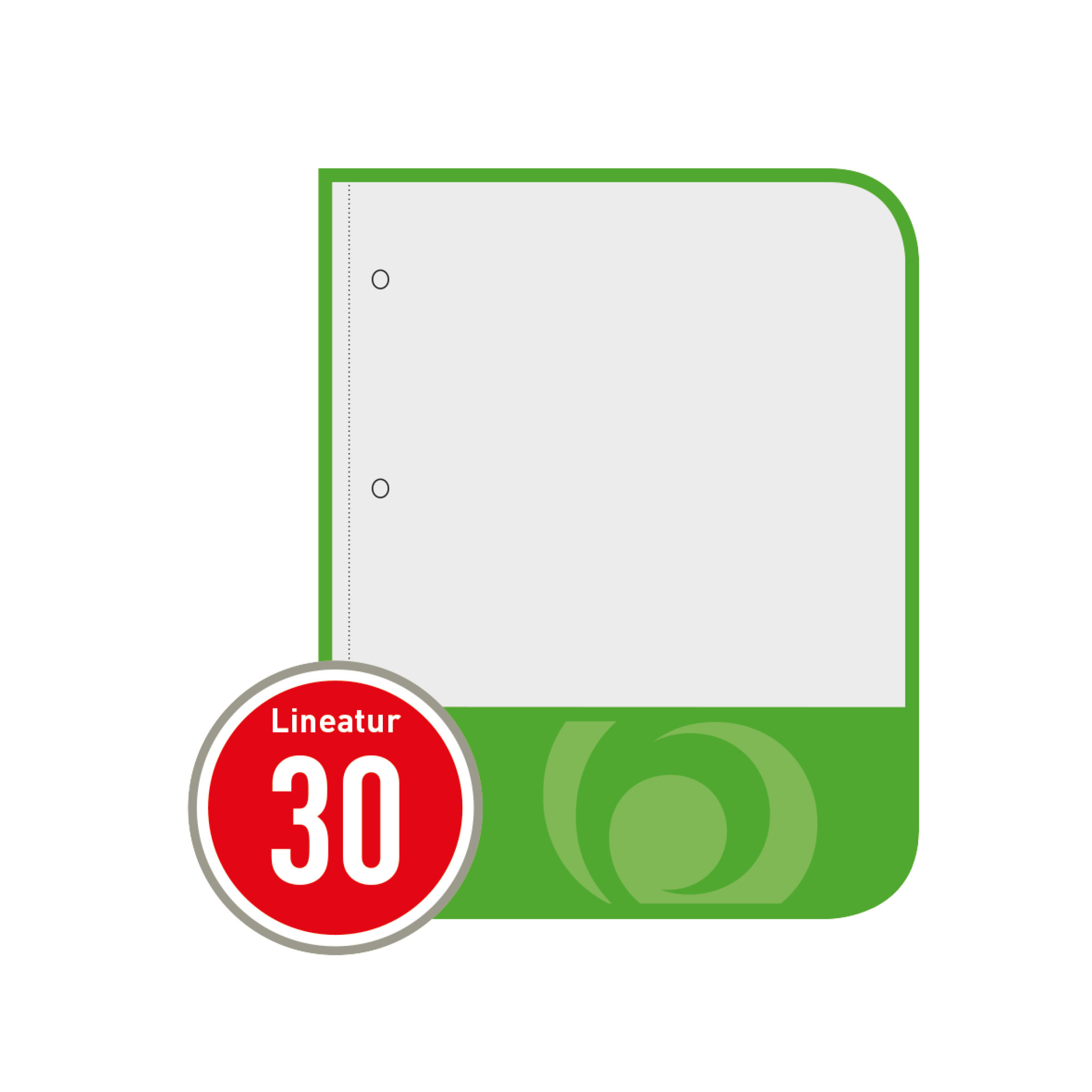 | holzfreies Papier, 80g/m² weiß, FSC Mix, 16 Blatt Abgerundete Ecken, Lineatur 30 (blanko) gelocht, Mikroperforation Motiv Wirbel grün 1 Stück  |