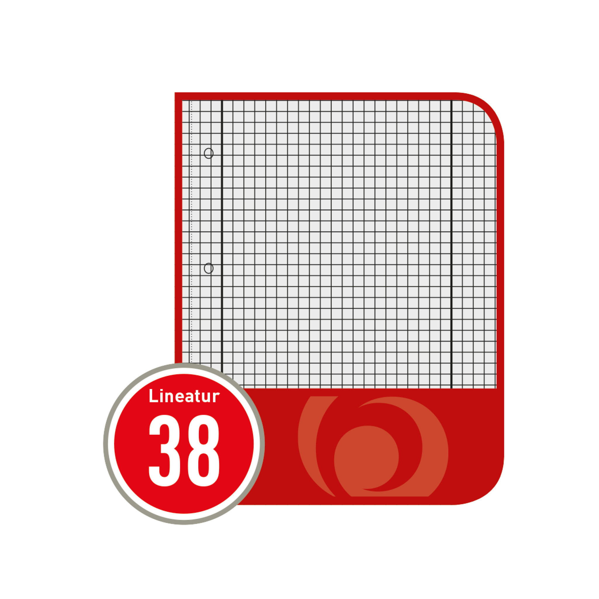 holzfreies Papier, 80g/m² weiß, FSC Mix, 16 Blatt Abgerundete Ecken, Lineatur 38 gelocht, Mikroperforation Motiv Wirbel rot 1 Stück |