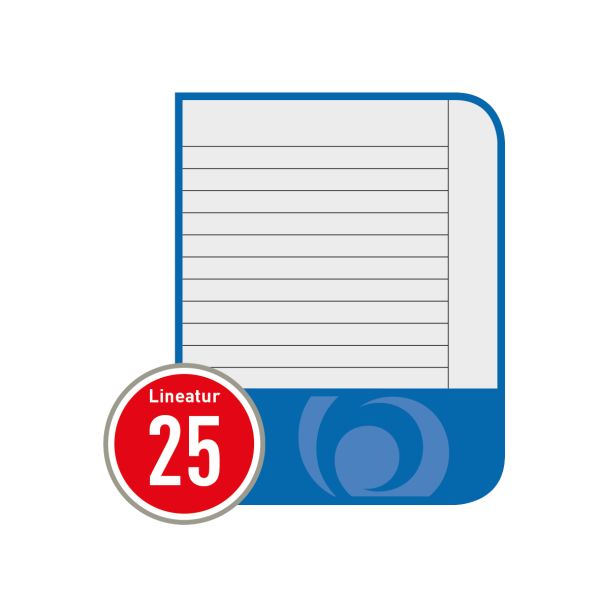 | holzfreies Papier, 80g/m² weiß, FSC Mix, 32 Blatt Abgerundete Ecken Lineatur 25 (liniert mit Rand) Motiv Wirbel blau 1 Stück |