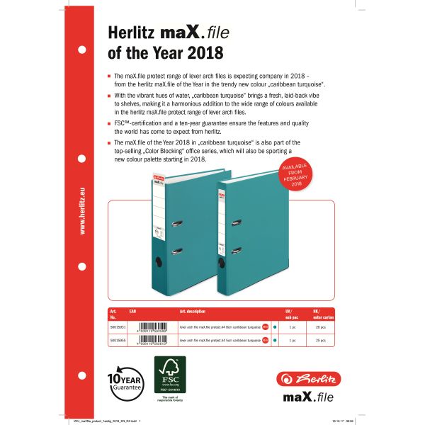 Artikelbeschreibung | Ordner maX.file protect A4 8cm c.tq |