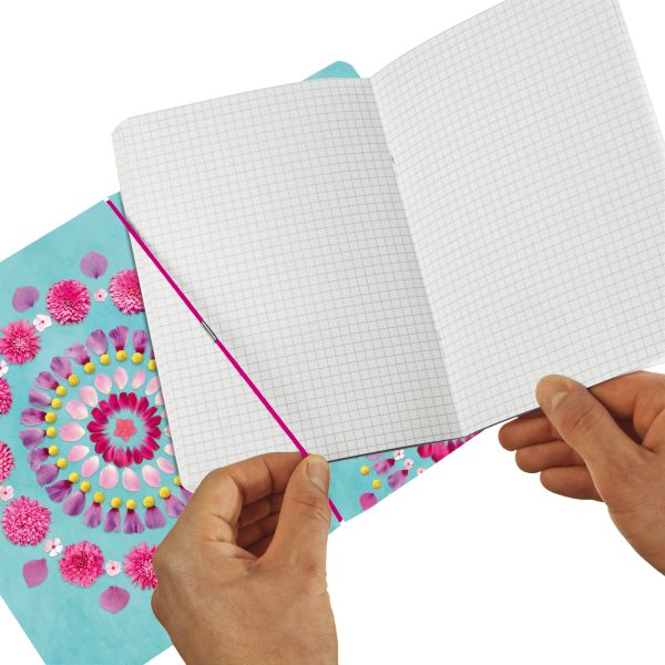 holzfreies Papier, 80g/m² weiß 40 Blatt, kariert (5x5) PP Wechselcover abgerundete Ecken mit Verschlussgummi intense pink Motiv Flowers 1 Stück |