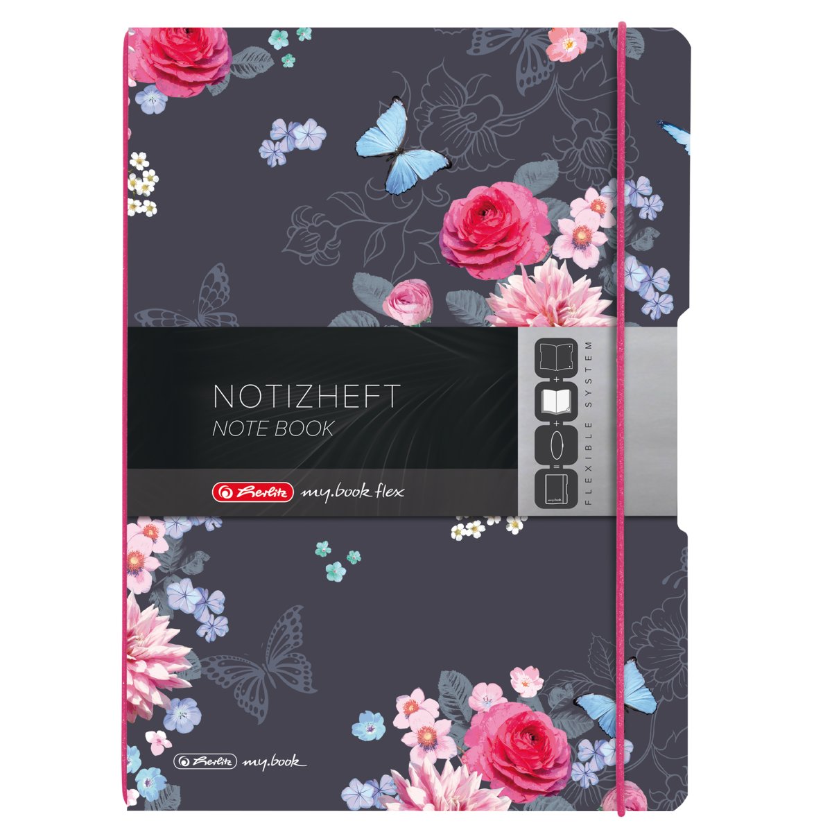 Notizheft flex PP A4,40Blatt kariert und 40Blatt liniert,Ladylike Flowers, gelocht, perforation my.book | |