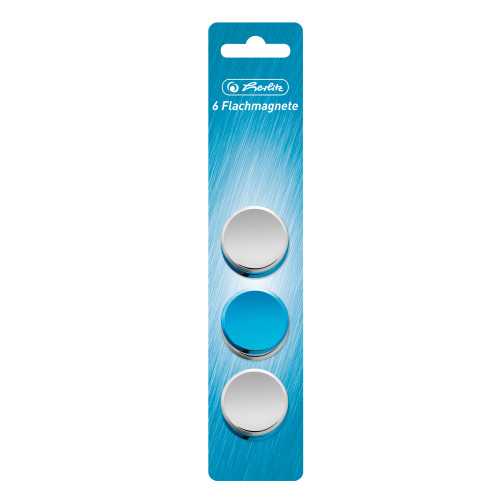 Ferro-Magnet, Kunststoffkappe rund, Ferro-Magnet Ø 24mm, Haftkraft 3 Blatt A4 ca. 15g, Kappe Kunststoff Ø 30mm silber + türkis metallic, Frozen Glam 6 Stück auf Blisterkarte |