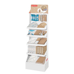 POS-Display, befüllt aus Pappe, Farbe Weiß Größe (B x H x T): 40 x 193 x 60 cm Inhalt: 178 Stück Schulbedarfsartikel Designserien Pure Glam und Frozen Glam |