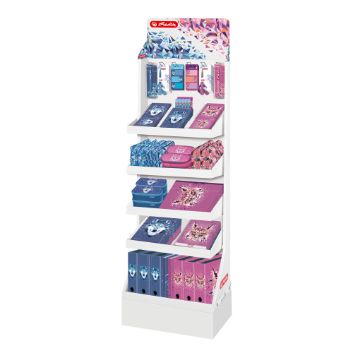 POS-Display, befüllt aus Pappe, Farbe Weiß Größe (B x H x T): 40 x 193 x 60 cm Inhalt: 156 Stück Schulbedarfsartikel Designserie Wild Animals |