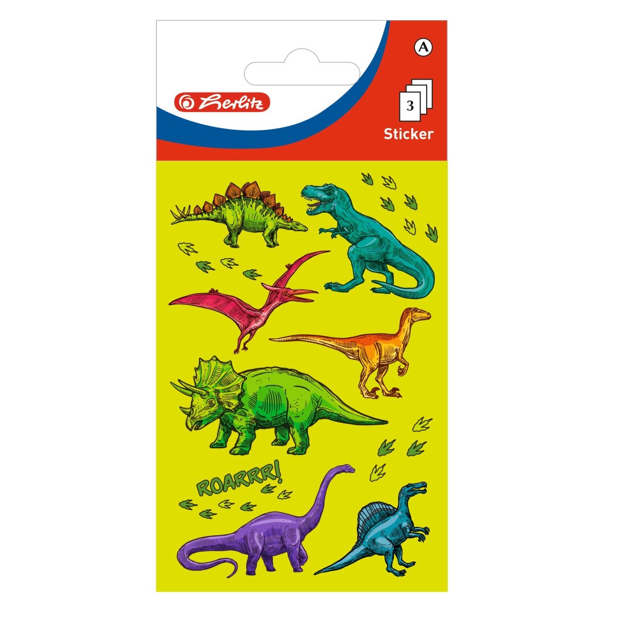 3 Bogen, selbstklebend Einzelartikel mit Einlegekarte & Eurolochung, 8x16cm Preisgruppe: A, Bogengröße 8x12,5cm Motiv Dino cellophaniert |