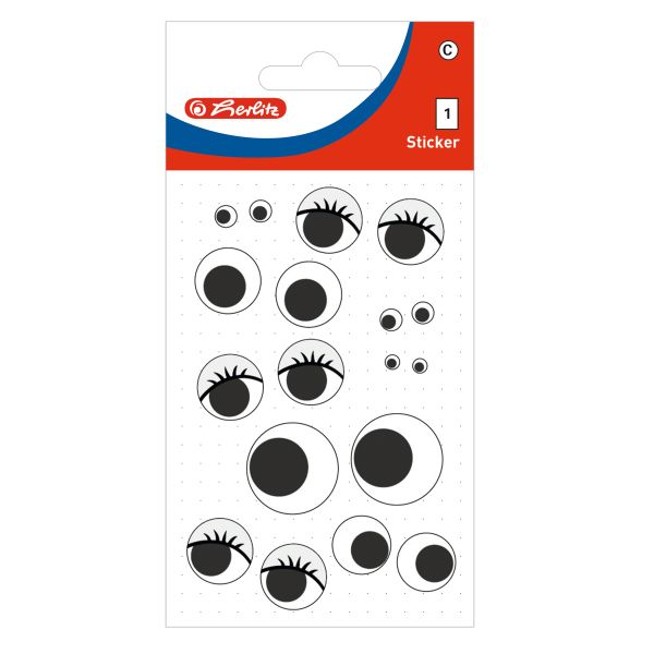 1 Bogen Wackelaugen Einzelartikel mit Einlegekarte & Eurolochung, selbstklebend, 8x16cm Preisgruppe: C, Bogengröße 8x12,5cm Motiv Wackelaugen cellophaniert |
