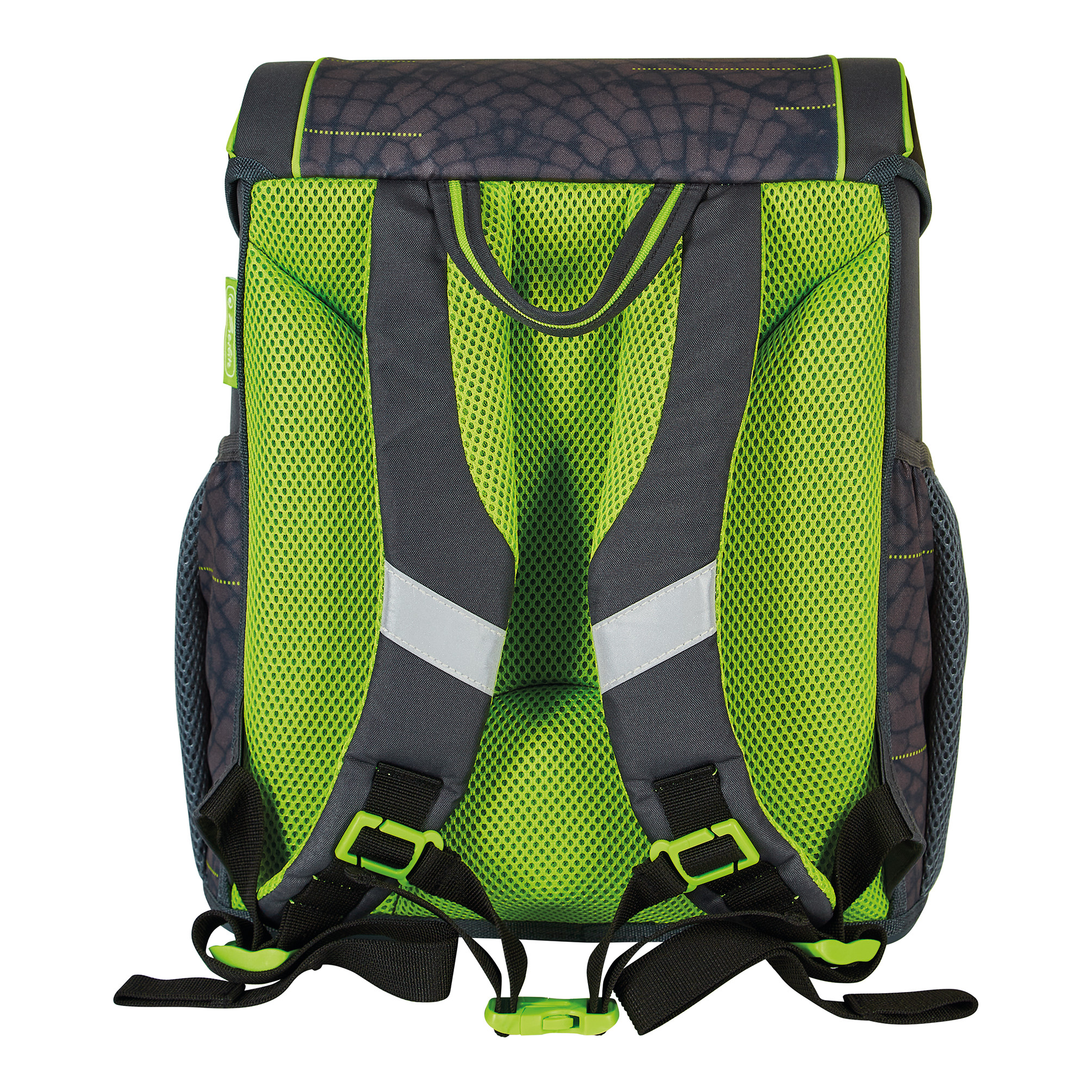 Kernvorteile | Eigengewicht unter 900g; ergonomisch geformte Rückenpolster; verstellbare Schultergurte; höhenverstellbarer Brustgurt; angenehme Passform; Orafol Reflexmaterialien; Klickschloss mit Reflektor; geräumiges Innenfach mit separatem Bücherfach; 1 Fronttasche; 2 Seitentaschen mit Gummizug; stabile Bodenplatte; Maße: 37x31x22cm; Gewicht: unter 1kg; Volumen: ca. 17l; Material: Polyester |