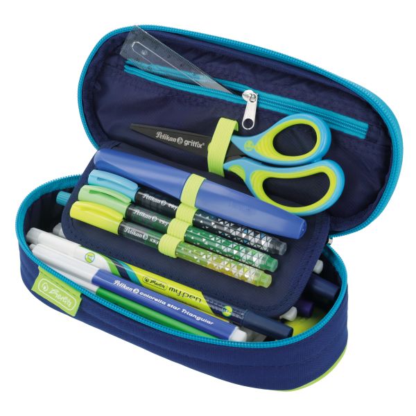 Kernvorteile | Für Schule; Uni; Beruf oder unterwegs; geräumiges Hauptfach mit Reißverschluss; Allrounder; Innenklappe mit Stifteschlaufen; separates Reißverschlussfach; Maße: 21;5 x 9 x 6 cm; leichter Transport; Material: Polyester; Motiv: Soccer |