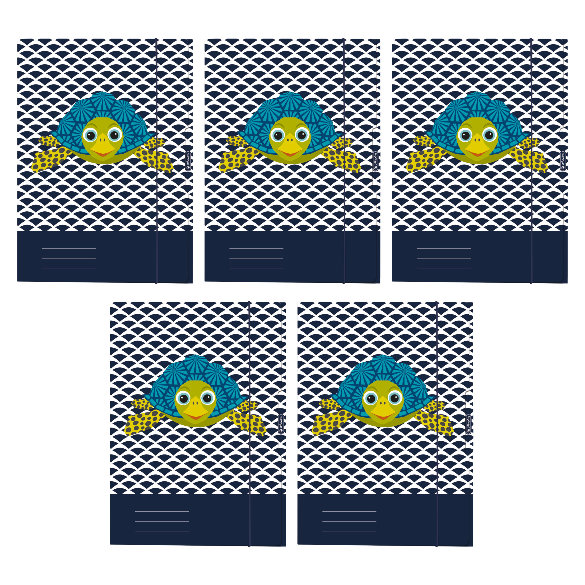 | mit 3 Innenklappen mit Gummiband Motiv Cute Animals Turtle 1 Stück |