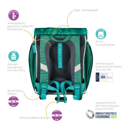 Polyester 38 x 32 x 22 cm Ergonomisches Rückensystem mit IGR-Zertifizierung und „Air Flow“ Magnetschloss, stabile Bodenschale Brustgurt, Orafol Reflexmaterial 2 abnehmbare Applikationen mit Klett Schüleretui 16tlg., Sportbeutel, Faulenzer Sport mit FSC zertifizierten Bunt- und Bleistiften |