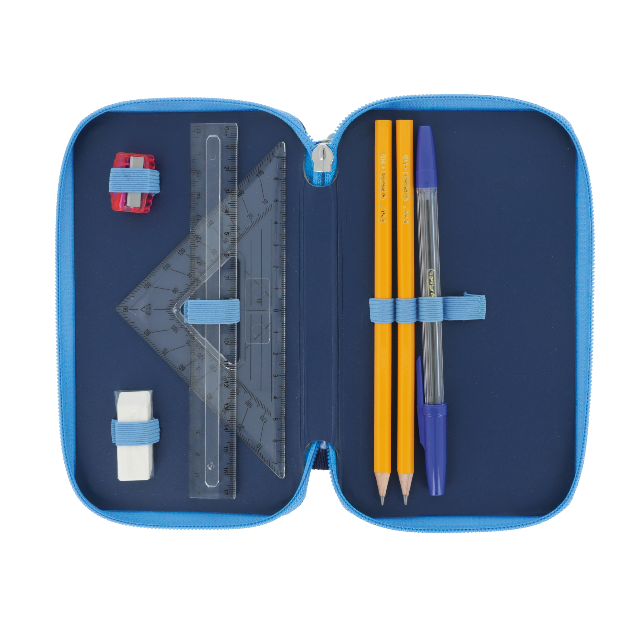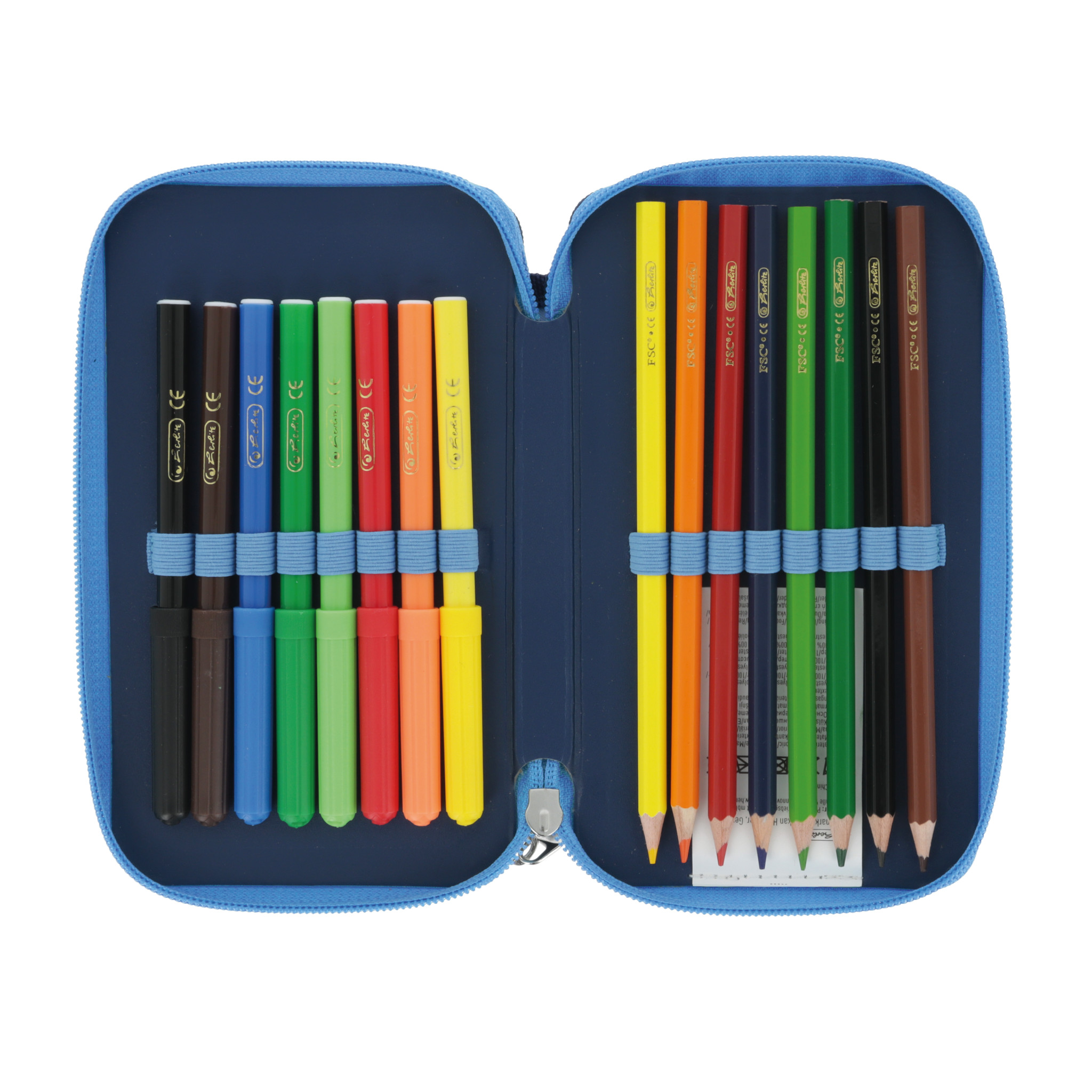 Polyester 19,3 x 11,5 x 5 cm 23 Teile, 2 Klappen farbiges Innenfutter mit FSC zertifizierten Bunt- und Bleistiften Fasermaler Deep Sea 1 Motiv |