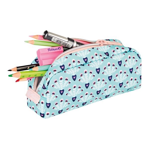 Kernvorteile | Das Herlitz Mäppchen ist ein echter Hingucker. Doch die Pouch Bag kann nicht nur optisch punkten. Das geräumige Hauptfach dieses Mäppchens bietet ausreichend Platz für Stifte aller Art, Mal- und Bastelutensilien, Büroartikel, Kosmetik, Accessoires oder sonstige Habseligkeiten. Ein Reißverschluss sorgt dafür, dass diese Gegenstände sicher verstaut sind. So gehen auch Kleinigkeiten nicht verloren und man hat die wichtigsten Utensilien immer griffbereit. Mit den handlichen Maßen von 19,5 x 6,5 x 9,5 cm passt das Schlampermäppchen dennoch problemlos in jeden Rucksack und in jede Tasche und lässt sich so besonders leicht transportieren. Damit ist die Herlitz Pouch bag der perfekte Begleiter für die Schule, die Uni, den Beruf oder in der Freizeit. Die Pouch bag von Herlitz mit dem Motiv Fancy Peacock mit dem Allover Motiv in hellblau mit Pfauenmuster trifft jeden Geschmack. |