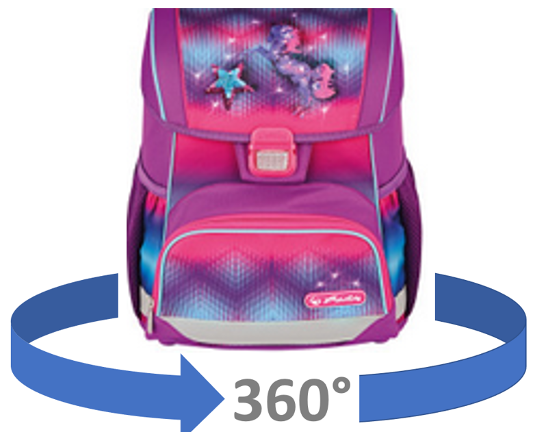 Polyester 37 x 31 x 22 cm Leichtgewicht unter 900g Klickschloss mit Reflektor ergonomisches Rückenpolster verstellbare Schultergurte stabile Bodenplatte, Brustgurt Orafol Reflexmaterial Applikation: Siebdruck, Pailetten Schüleretui leer mit 2 Klappen, Faulenzer oval und Sportbeutel |